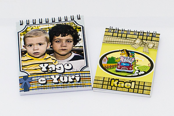 10 x 15 cm | suporte em tríplex 4×0 cores | com 12 folhas em sulfite | imã no verso.